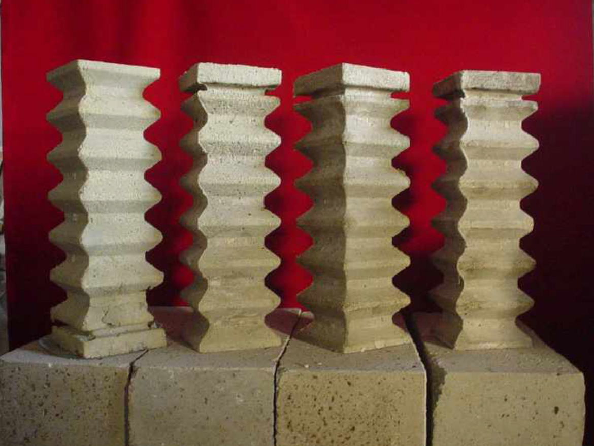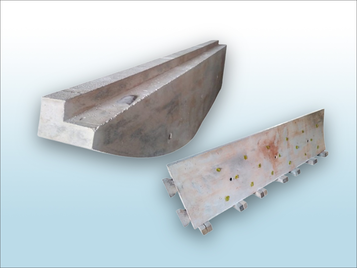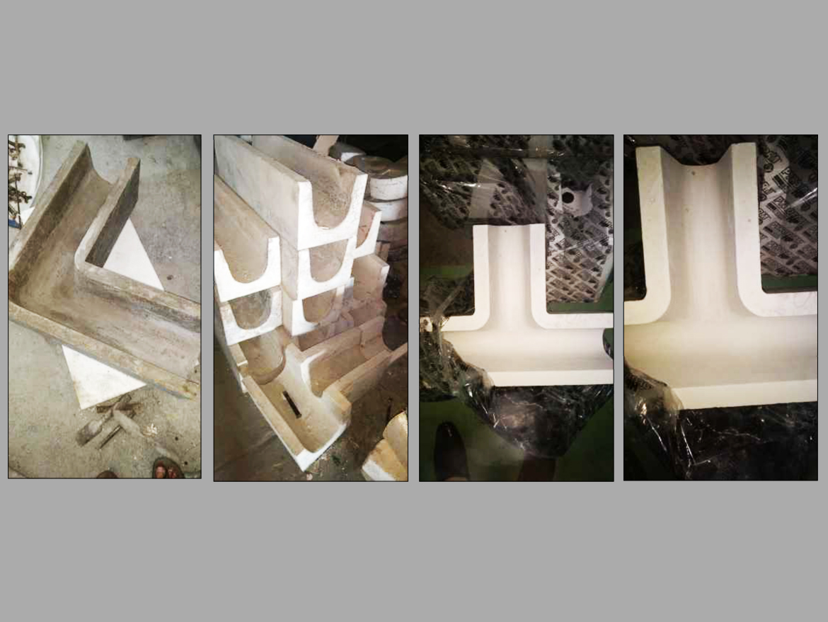 - 6. PCPF Shapes: Precast, prefired shapes as per requirement. e.g Burner Blocks,Well Blocks, Flow Modulators, Darts, Dams, Baffles, Impact Pads, PCPF Blocks for Furnaces including reheating, sintering, annealing etc., TA Duct dampers, Tip Casting, Cooler Arch, Side walls etc for cement plants.